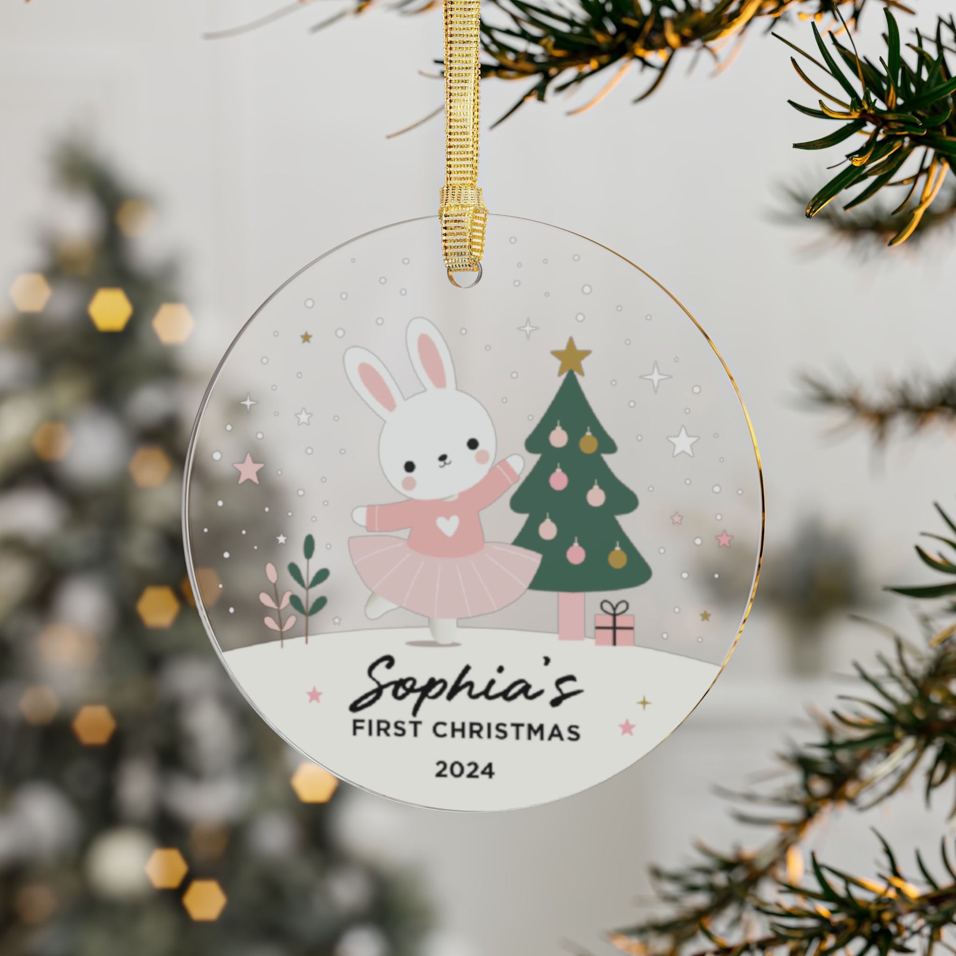 Acrylic Ballerina Bunny Ornament - First Christmas